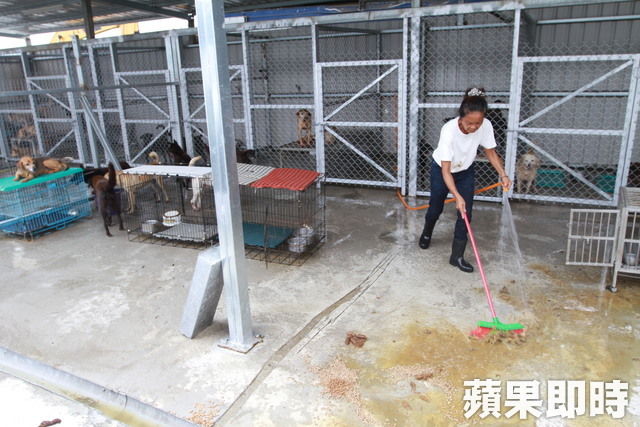 紀媽每天要花許多時間清理狗園空間。俞泊霖攝