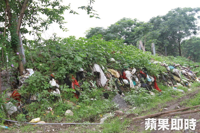 舊狗園旁成堆如山待清的垃圾。俞泊霖攝