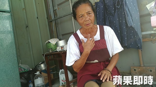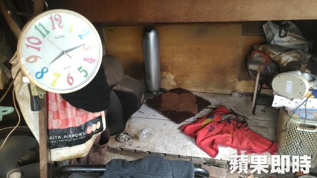 破工寮連躺的地方都沒有,紀媽說自己就睡在躺椅上,老公有時趴在桌上睡,有時睡車上。俞泊霖攝