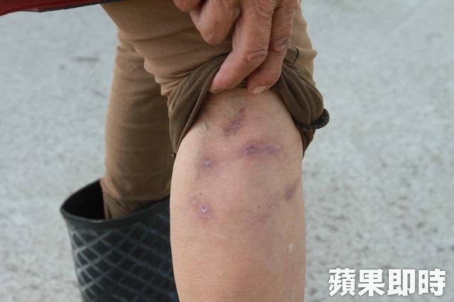 紀媽日前照顧流浪狗右小腿被咬傷,一個多月才復原,她說不會怪流浪狗。俞泊霖攝